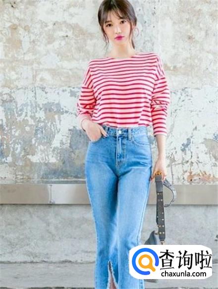 一条淡蓝色的牛仔裤难道只能搭配黑色白色吗?错了,搭配红白相间的条纹衫更靓丽哦,分分钟让你变身美少女战士的节奏。