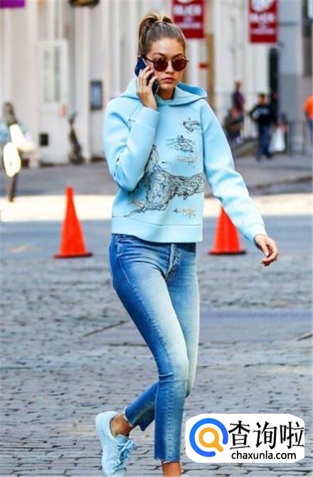 秋季的时候,一条淡蓝色牛仔裤搭配一件同色系的卫衣,只要你敢穿,你就会发现自己的 整个气场都变啦,非常的时髦哟。