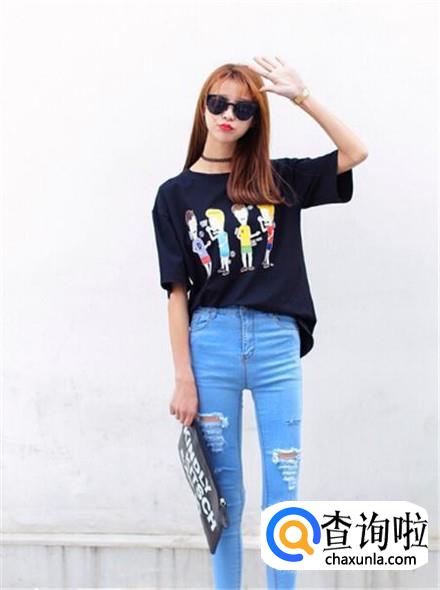如果你的大腿不是很粗壮的话,那么一条紧身蓝色牛仔裤搭配一件黑色T恤是非常显身材的,且年轻时尚随性。