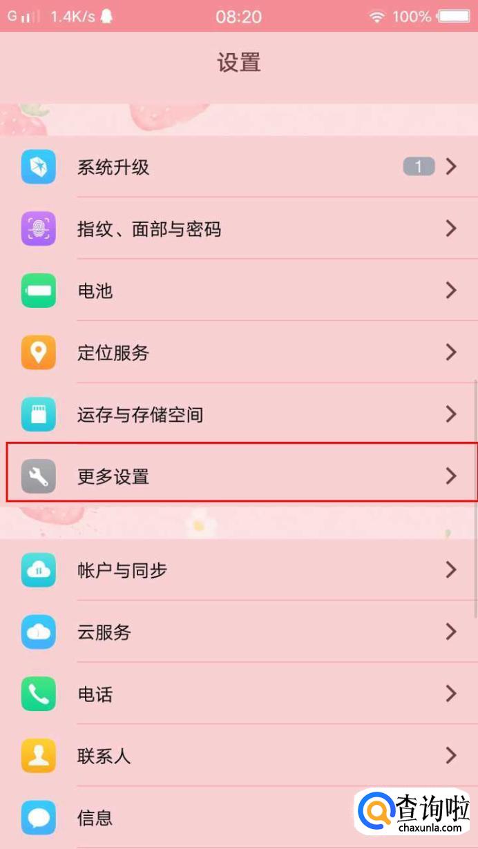 打开设置后,选择“更多设置”,点击打开。