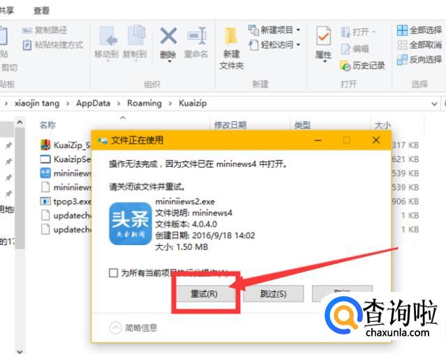 删除那两个文件后,会再次弹出一个对话框,点击【重试】,这样就可以将广告窗口彻底关掉了,这样就不会再弹出一些无聊的广告了。