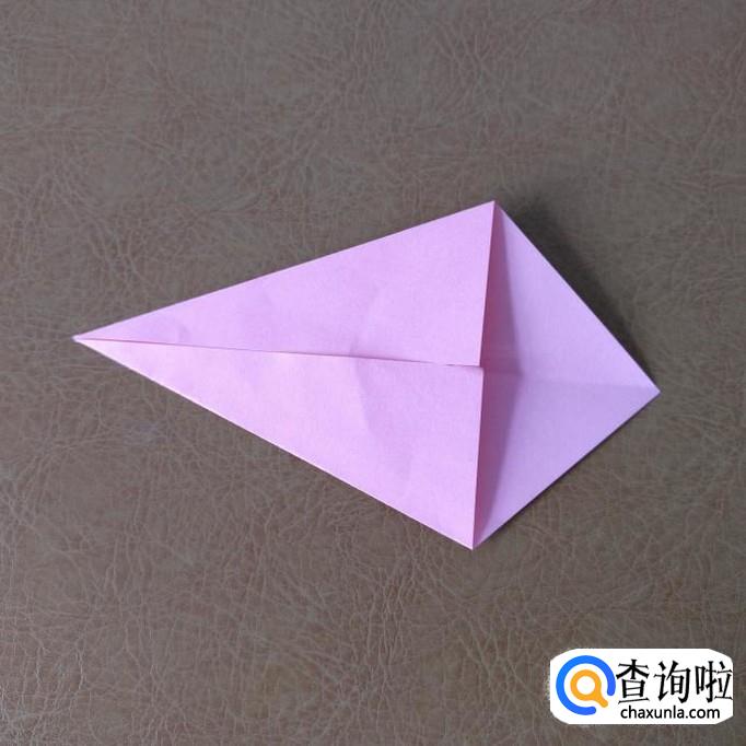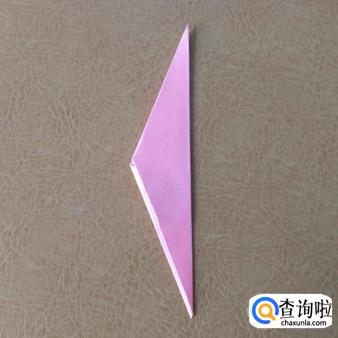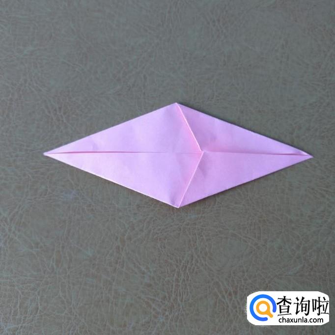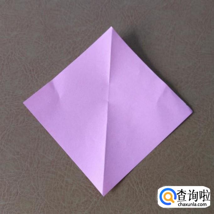 先把折纸沿对角线对折后打开,然后把上下两面分别折向对角线。