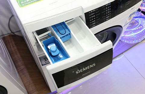3、放入衣服之后,接着把添加洗衣粉或者洗衣液倒进洗衣机自带的洗衣粉盒中,打开水龙头,盖上机盖。注意:滚筒洗衣机一般会有一个料盒(一般在左上角),料盒分为三格,从左至右分别投放主洗剂、柔顺剂和预洗剂。这三格大家一定要搞清楚,放错了可就尴尬了。