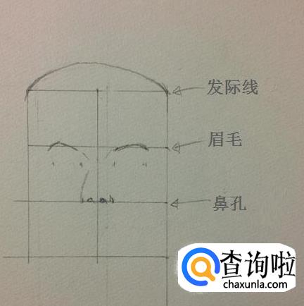 再将剩余的眼鼻口耳朵添加上去。并做一些刻画。这一步很重要,是确定人面像的重要一步。勾勒好眉毛和鼻子。