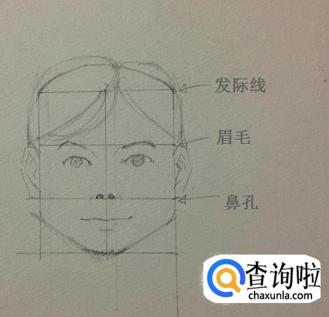 将长方形三等分,主要是确定额头,眼睛,面颊,和下巴,在上面盖个锅盖,基本脸型就完成了。