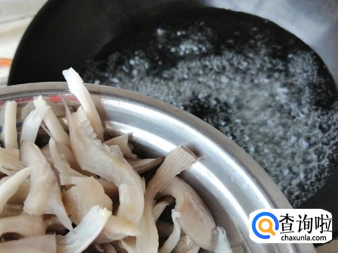 锅里放入适量清水,水开后放入备好的蘑菇条,大火煮开三分钟左右,水、菜比例根据自己喜好放,喜欢喝稠汤,就少放水多放菜。