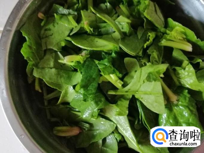 取适量菠菜,用清水把菠菜洗净,然后把菠菜切段待用,菠菜用量根据吃饭人多少,来选择用量。