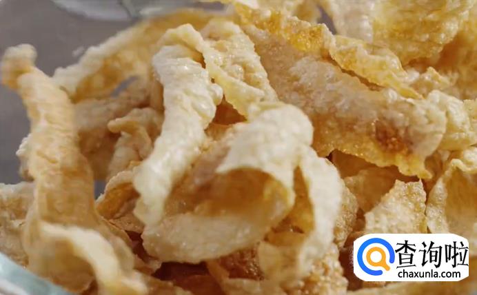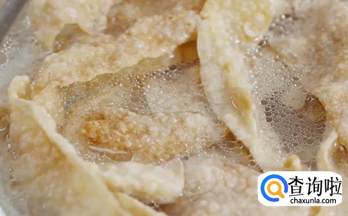 先起油锅,将油烧到五六成热转小火,这时下入豆皮快速过油,当豆皮成金黄色时立即捞出。