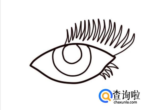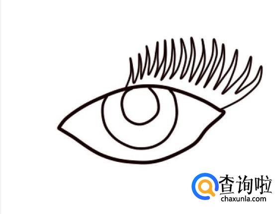 在上眼皮上方,画一排弯弯的锯齿形状,表示上睫毛。