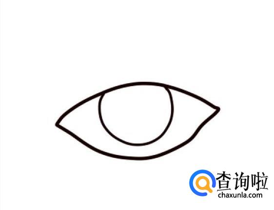 在眼眶里面画一个不完整的圆,表示眼珠,因为上眼皮把眼珠盖住了一部分。