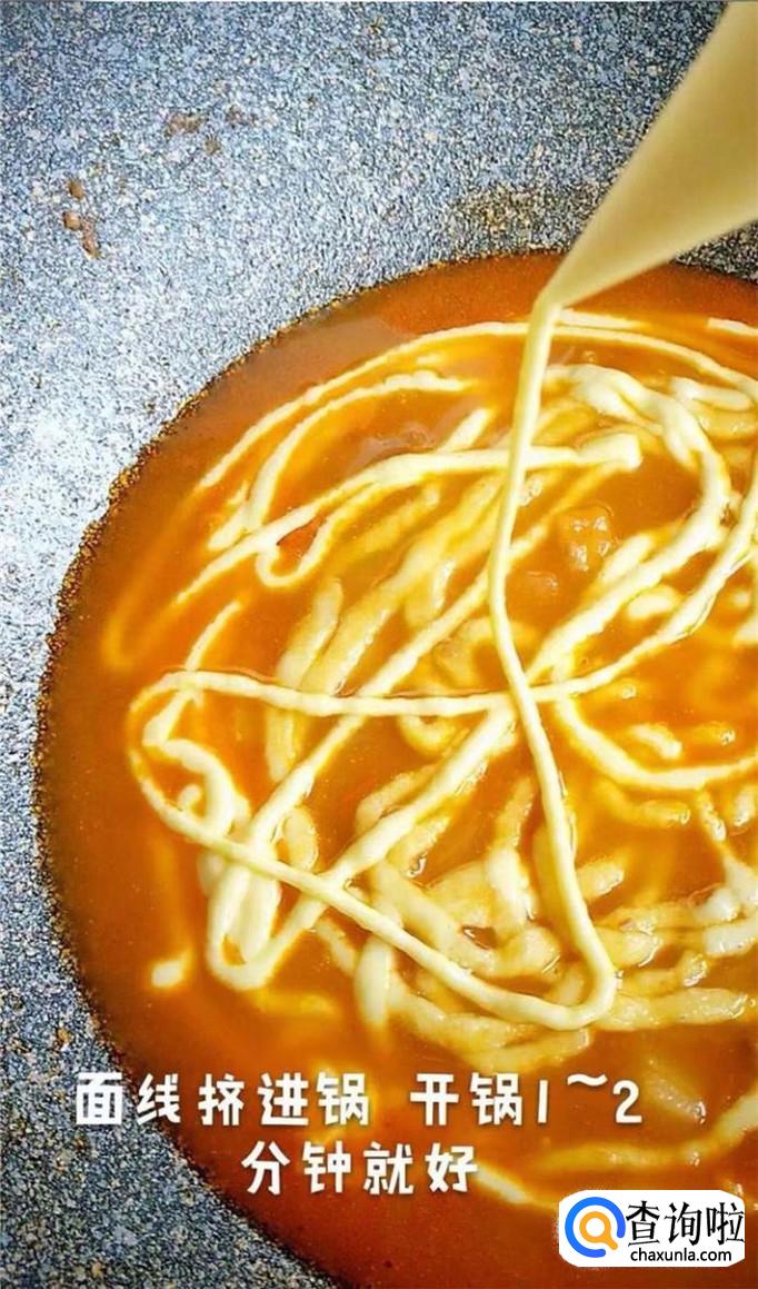 然后将面线挤入锅中煮一到两分钟就可以了。