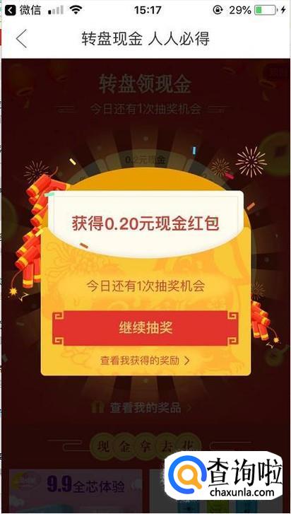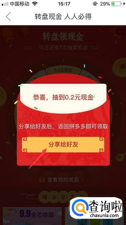 成功中奖现金红包后下方会提示分享给好友,我们点击一下。