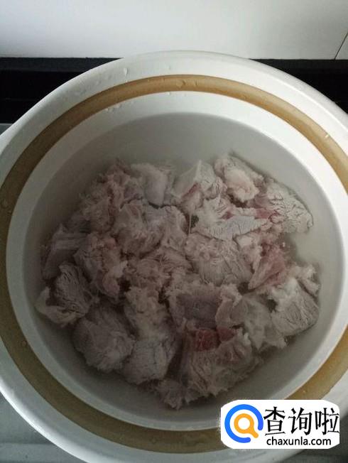 然后把烫好的排骨倒进砂锅并加入适量的水,如下图所示。