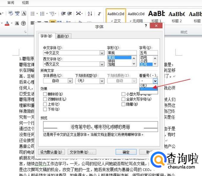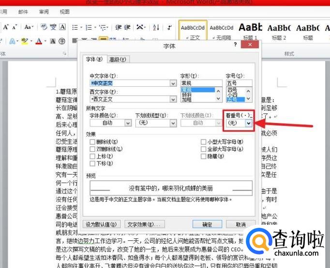 接着在新的界面中我们就可以看到在着重符号的设置内容了。如图。