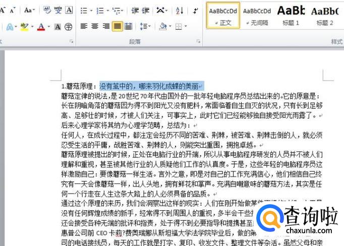 接着选中你想要添加在着重符号的内容,如图。
