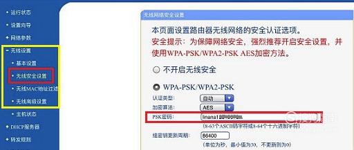 在到登录的网页上面选择无线设置,无线安全设置。