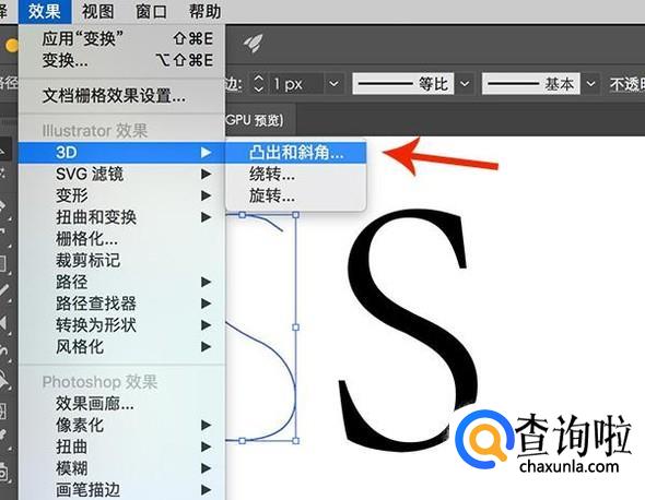 接下来点击勾好的路径,选择“效果-3D-凸出和斜角”