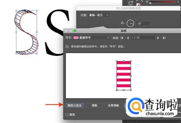 需要注意,设置框会提示表面的数量,每一面我们都需要贴上符号,并且选择“缩放以适合”