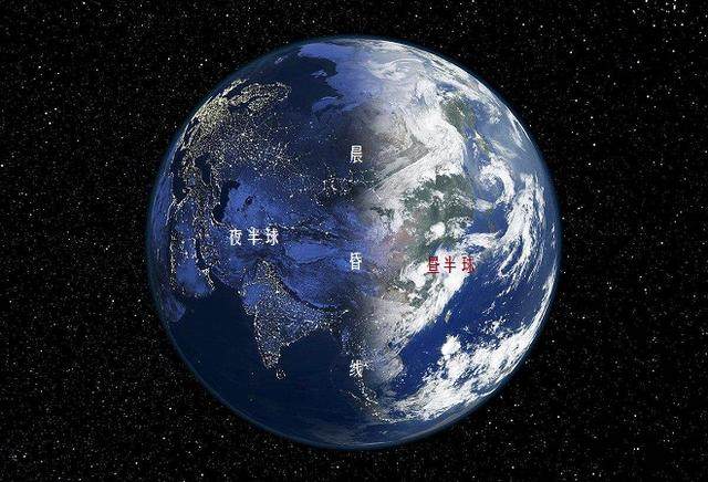 除了以上固定的半球划分,地球还有一个动态的半球划分,那就是以白天和黑夜,的分界线晨昏线为界,划分为昼半球和夜半球。任何一个时刻的昼半球,就是以太阳直射点为中心的半球;而夜半球就是以太阳直射点经过地心的对跖点为中心的半球。