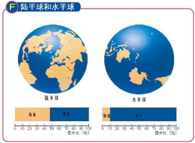 除了利用经纬线来划分地球以外,我们还可以根据地球表面的海陆面积分布来进行划分,当然地球表面海洋占了绝大多数的面积,大约有3.62亿平方千米,占了地球总面积的71%,而陆地只有1.48亿平方千米,占了地区总面积的29%,而且陆地在地表的分布是分散的。所谓的陆半球,就是西经1°32',北纬47°13'为中心的半球,该半球包括了七分之六的陆地面积,反之以东经178°28',南纬47°13'为中心的半球,称为水半球。