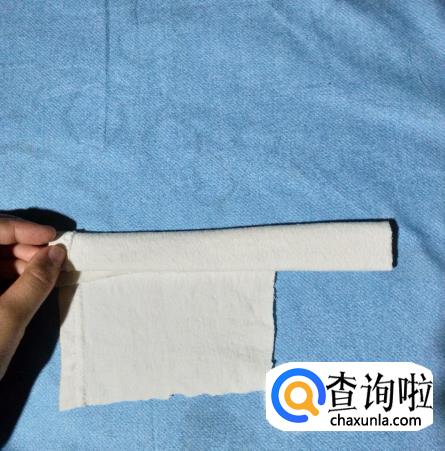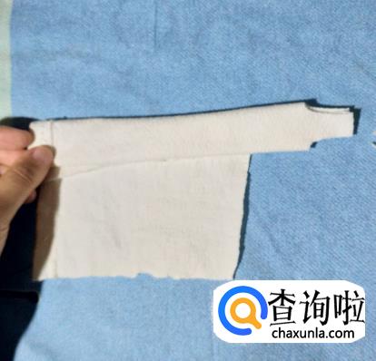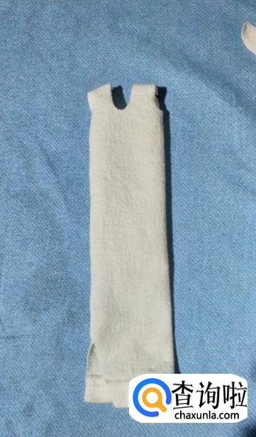 选择一个边作为上衣部分,就需要把这部分修剪成方形,长度和宽度要根据芭比娃娃的具体尺寸为准,并且要稍稍大一点,这样才好给芭比娃娃穿上。