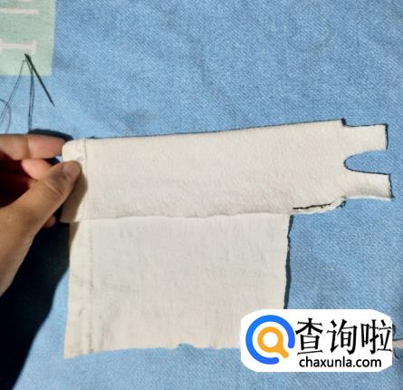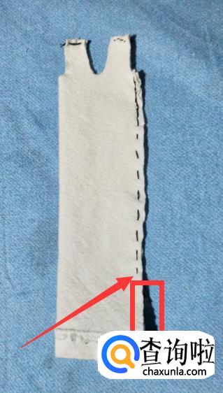 接下来就是把布料对折,用针将上衣部分的侧边缝好。