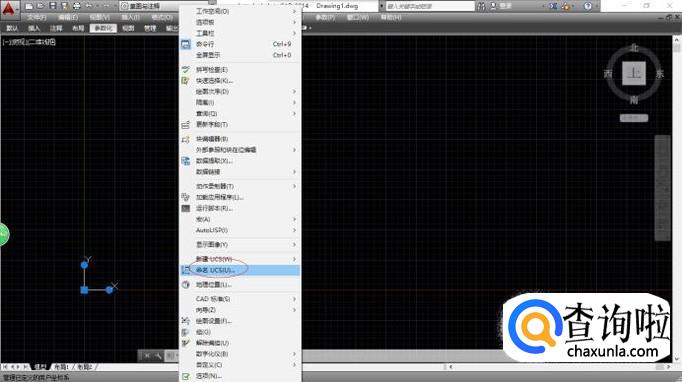 如图所示,点击"工具→命名UCS..."子菜单。弹出"UCS"对话框,用于命名用户坐标系。