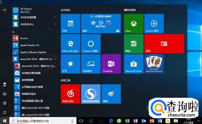 如图所示,展开左侧树形目录结构。点击"AutoCAD 2014 - 简体中文(Simplified Chinese)"项,用于打开"AutoCAD 2014"应用程序。