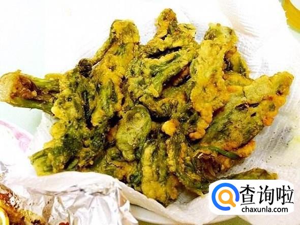 然后把有烧热,然后把炒过水的刺嫩芽裹上一层面粉糊状物,放入锅里炸就可以了,等待刺嫩芽表面金黄就可以了。