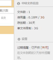 在文件中转站里,有一个使用量,非会员的容量是3G,容量满了只能删除一部分了。