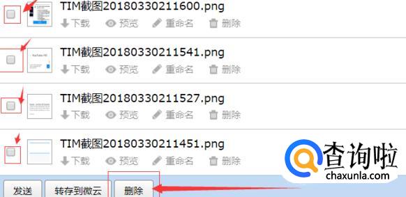 点击左侧小框选择,再点击下方的删除,就可以将以前不需要的文件删掉了。