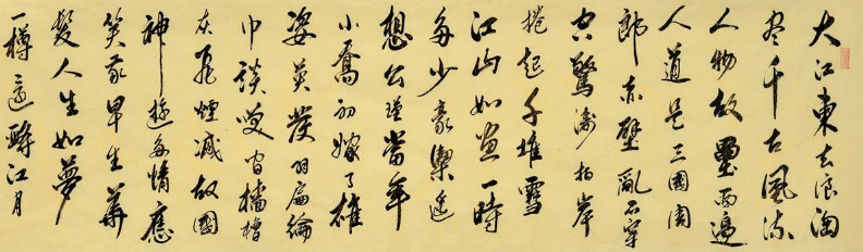 江山如画,一时多少豪杰。 遥想公瑾当年,小乔初嫁了,雄姿英发。
