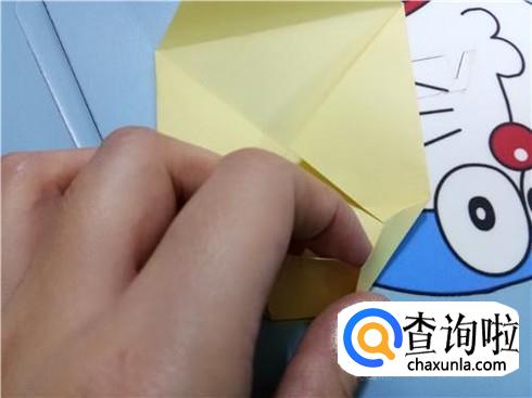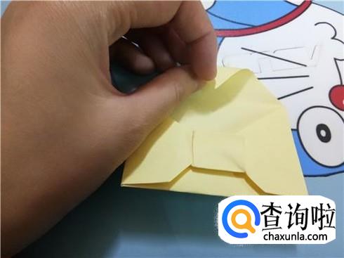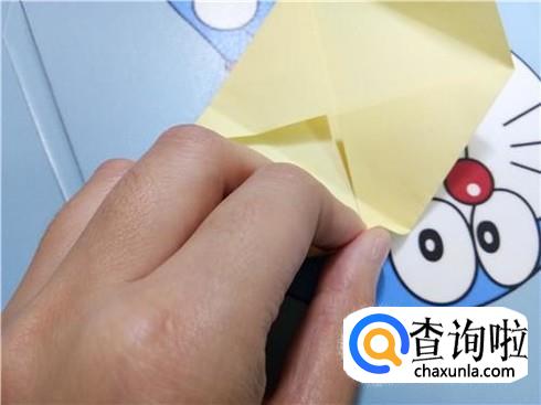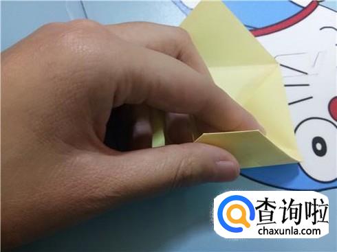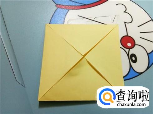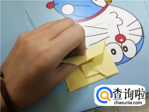 我们将相对的两个三角形轻轻地扯出来并将它压在小正方形的下边,左右两个三角形都是这样。