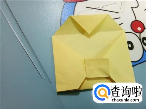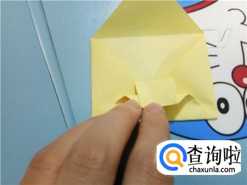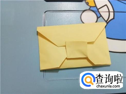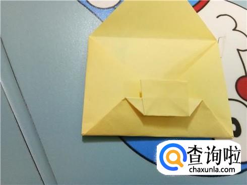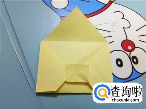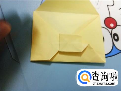 最后,将最上边的三角形的顶点折到它的最长边,再将上边部分折下来使小正方形压着它们,这样,带锁的信封就折好了。