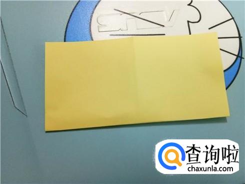 首先,我们找到一张正方形的折纸,并且沿着它的中轴线进行对折,再沿着另一条中轴线进行折叠。