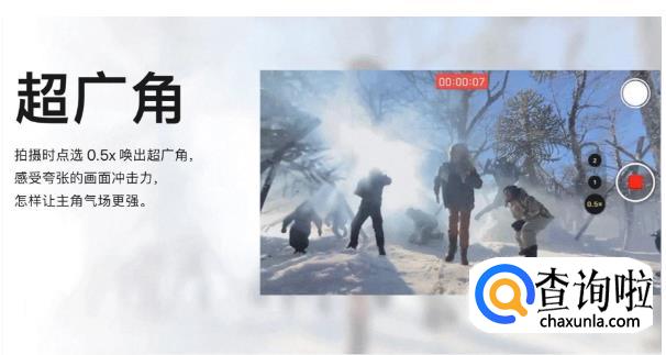 超广角:能让取景范围最高达到四倍,有了超广角,一切场面都将变成大场面,让你的画面带出电影级别的张力。