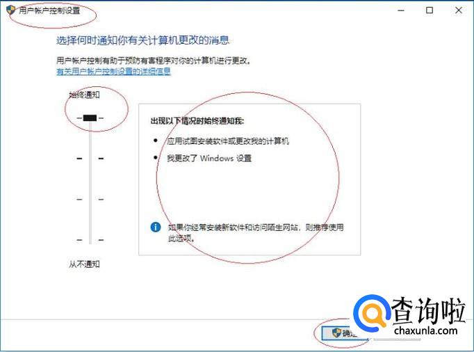 拖动滑块设置始终通知更改计算机的消息,完成安装软件需要管理员权限的操作。