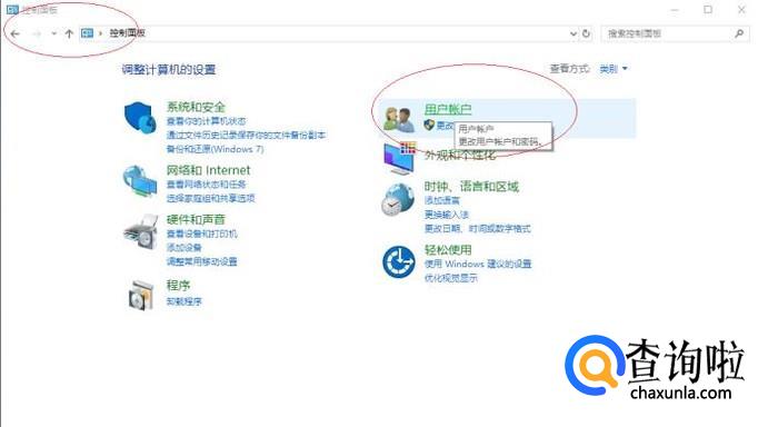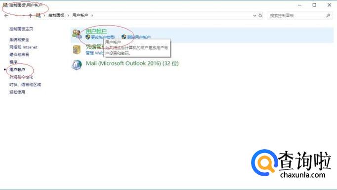 唤出"用户账户"选项界面,点击右侧"用户账户"图标。