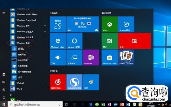 拖动右侧垂直滚动条,选择"Windows 系统→控制面板"项。