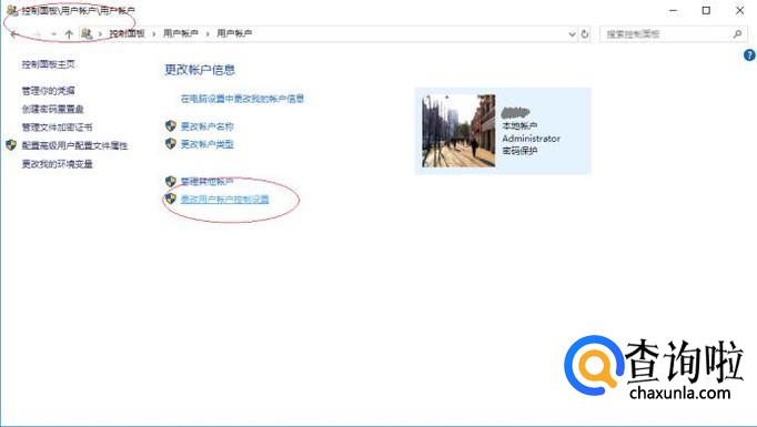 唤出"更改账户信息"选项界面,点击"更改用户账户控制设置"图标。