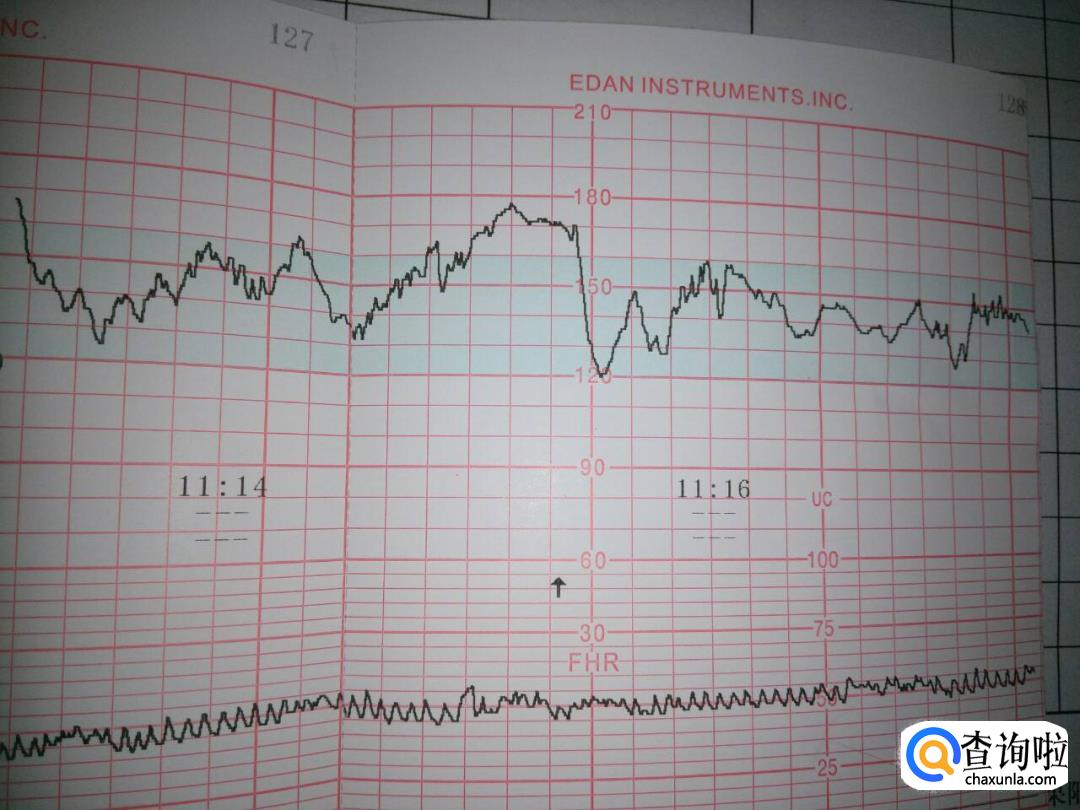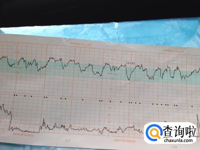 胎心监护图上有两条线,上边那条是胎心率变化曲线,下边是宫缩的曲线。