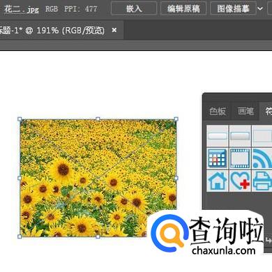 再返回到电脑桌面,把最后一张图片拉到画板中。再点嵌入;保持图片在选中的状态下,再点符号面板的“新建符号”按钮。把此图片变为符号,并命名为“花三”;再把画板中的图片删除掉。