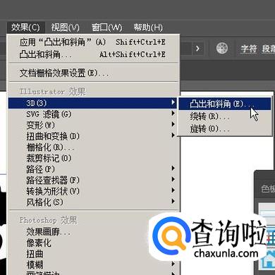 “花”字在选中的状态下,在菜单栏中点“效果”;再点“3D”;再点“凸出和斜角”