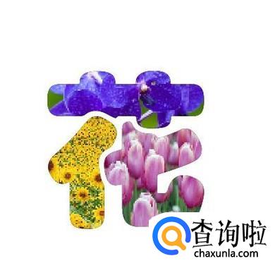 这时,再点“符号”下拉按钮,等弹出下拉菜单再点选“花二”符号图。那么,画板中的“花”字第二笔画已贴上了“花二”图。