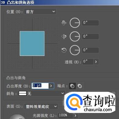 弹出操作面板,在“位置”这里,设置为“前方”;再把“凸出厚度”设置为0