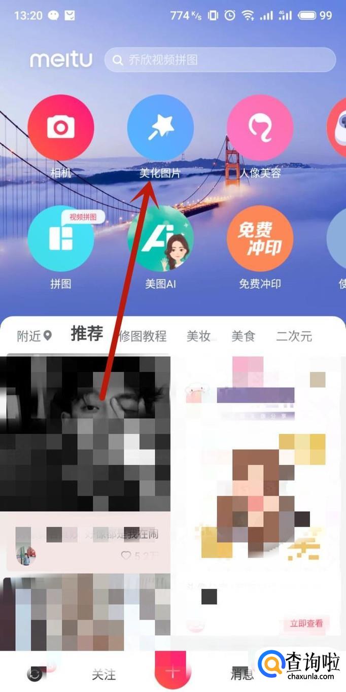 手机版美图秀秀擦除马赛克,需要进入美图秀秀,点击“美化图片”,选择一张图片,点击“马赛克”,在图中打上马赛克,再点击“橡皮擦”命令,在需要擦除马赛克的位置划动即可将其擦除。