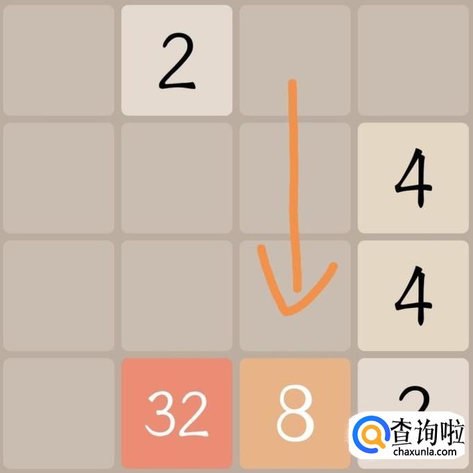游戏刚开始的时候可以看到都是一些比较小的数字,往箭头方向滑动屏幕,将两个最小的数字“2”合成为较大的数字“4”