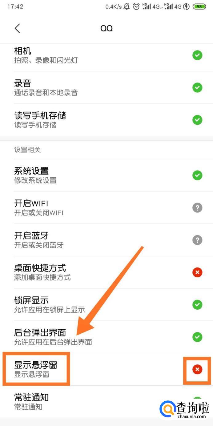 接着我们会发现【显示悬浮窗】后面是【x】,我们点击它。