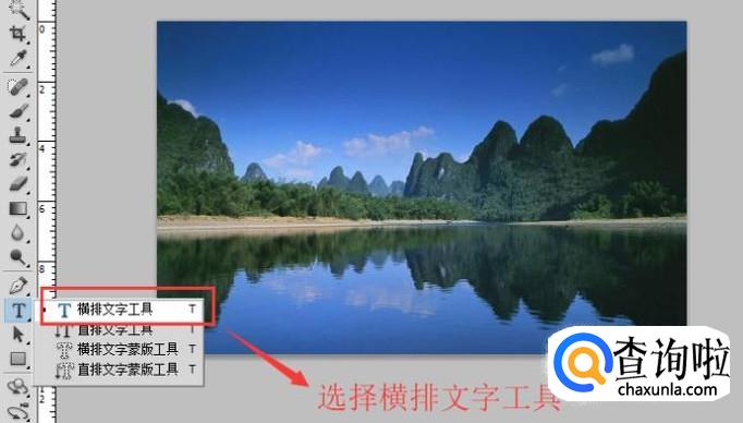 接下来我们选择左侧工具栏的横排文字工具,如下图所示