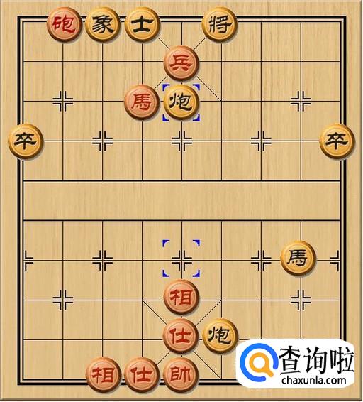 黑方炮5退4,黑方中路退了回来别住了红方马马腿,致使红方兵不敢横向移动当头将军,保证了黑方老将当头的安全。如图所示。